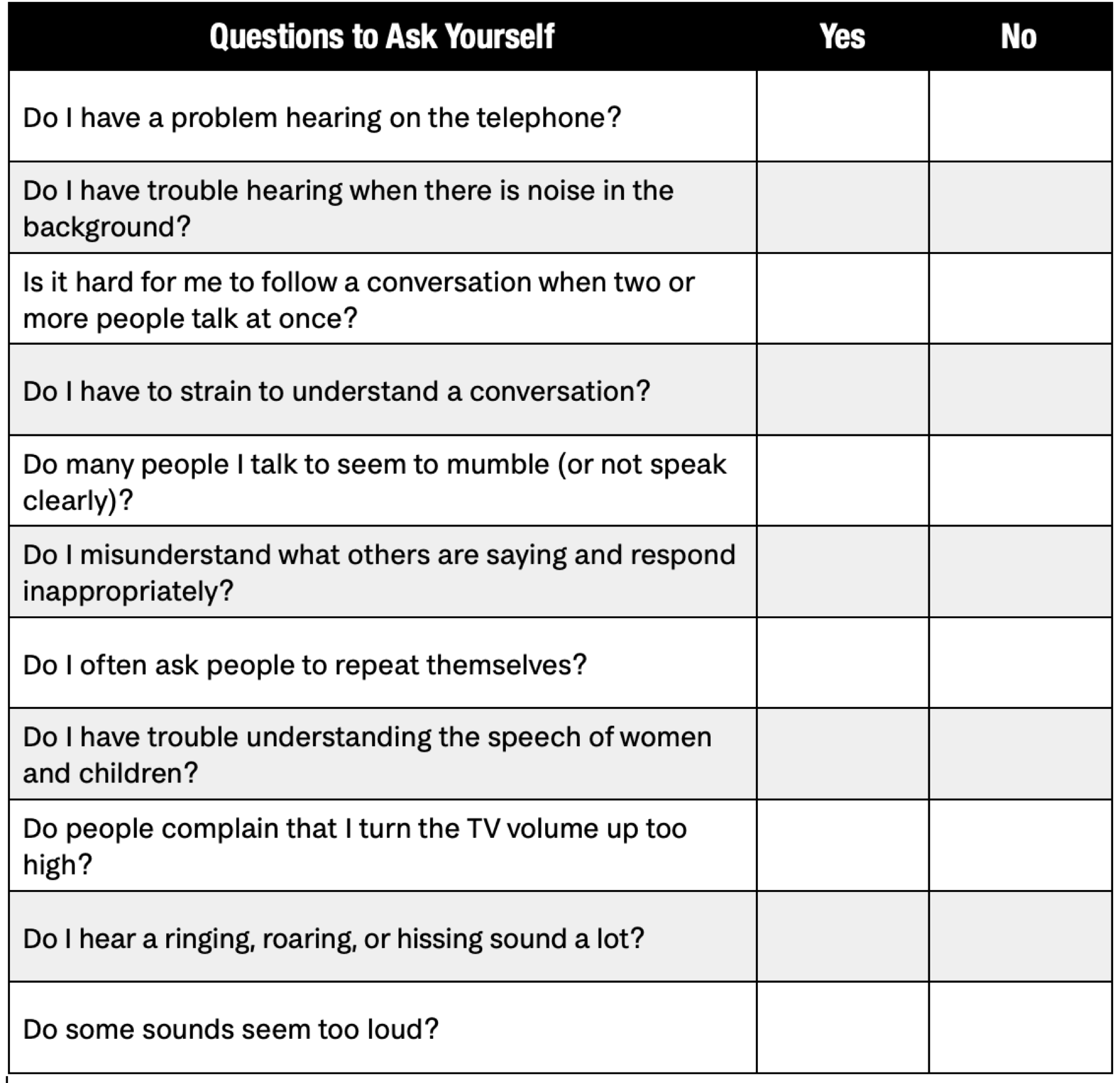 Schedule a hearing screening if you answer "Yes" to three or more items.