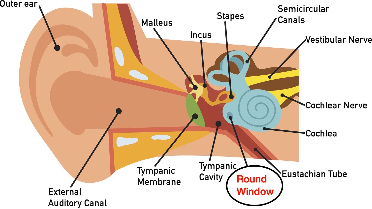Anatomy of the inner ear. The Round Window is where the drug will be injected.