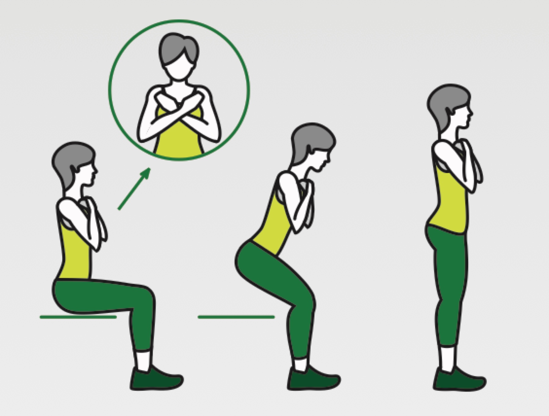 What to do: Sit in the middle of the chair, cross your arms over your chest, and see how many times you can fully stand up and sit back down in 30 seconds.