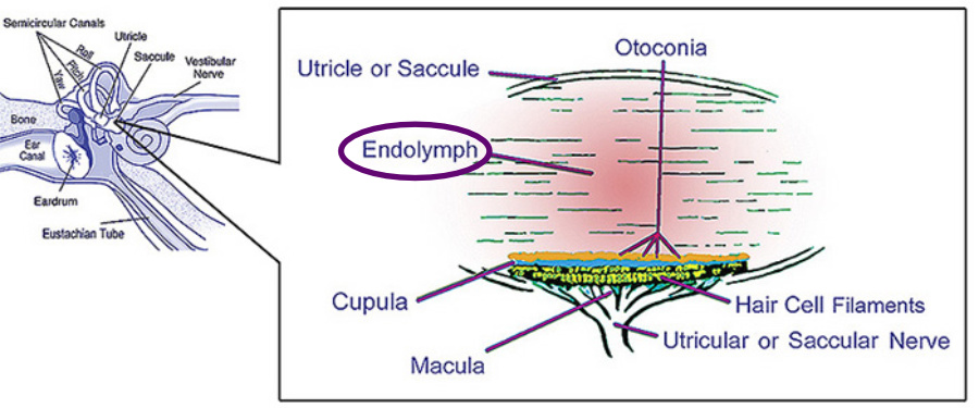 Endolymph is a sensory fluid in your inner ear that plays a role in both your hearing and balance (vestibular) systems. Its movement triggers nerve cells within your inner ear to communicate information about sounds and body position to your brain. Too much endolymph in your inner ear may lead to Ménière’s disease. —Cleveland Clinic