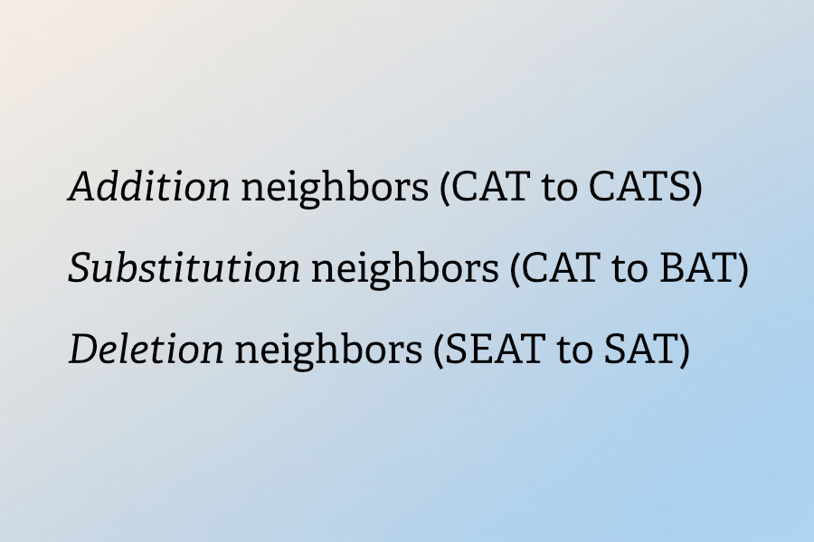 - Substitution neighbors (CAT to BAT)