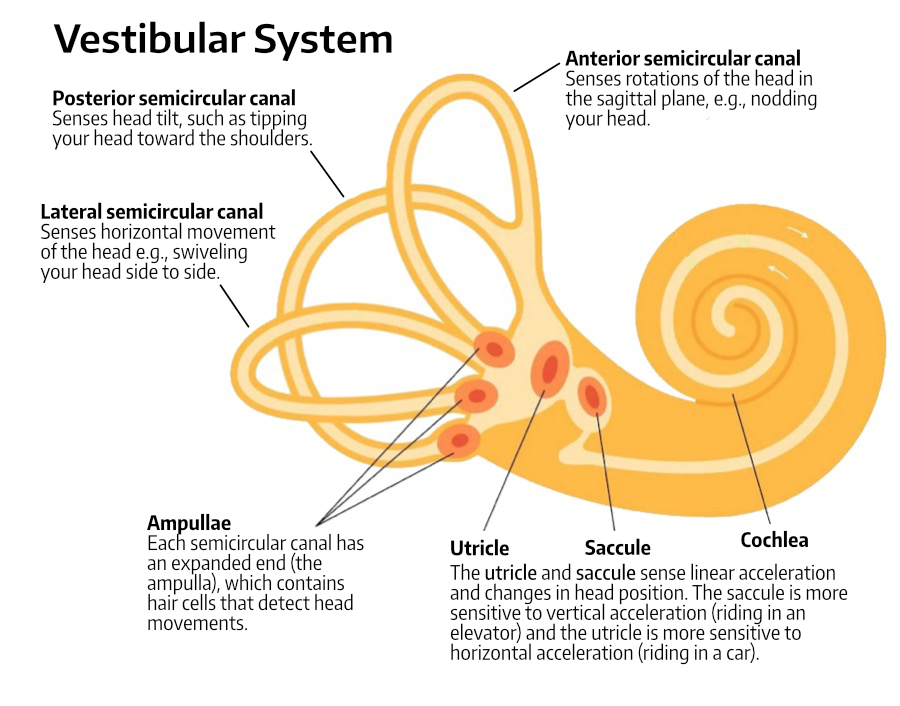 The vestibular system creates sensory information about balance, motion, and the location of our head and body.