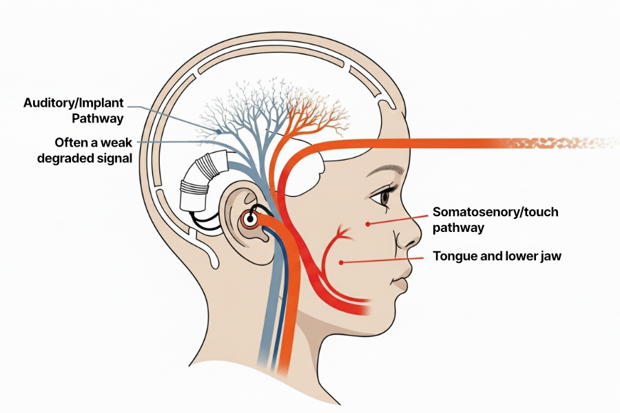 The brain is a compensation system. When clear auditory input is unavailable or degraded, it compensates by relying on non-auditory signals.