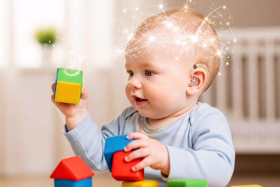 Early introduction of sound through hearing aids, cochlear implants, or sign language helps “rewire” babies’ brains, giving them the right tools and roadmap to build communication networks. The first 12 months are crucial because the brain is most flexible and ready to learn.