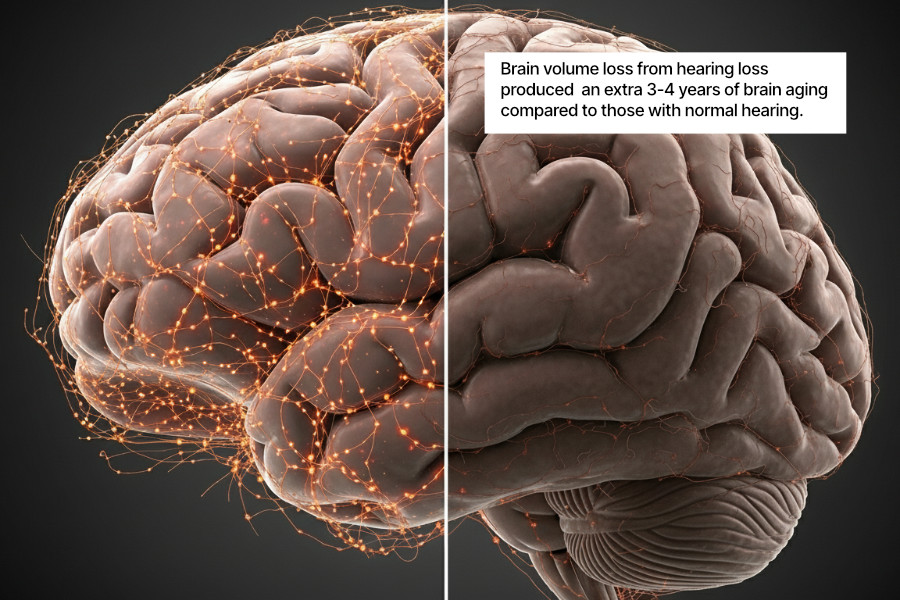 Brain volume loss equaled an extra 3-4 years of aging compared to those with normal hearing.